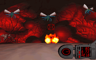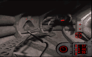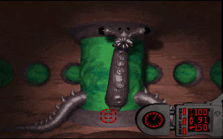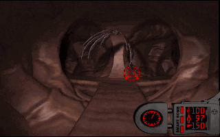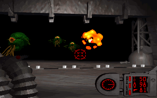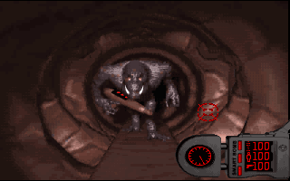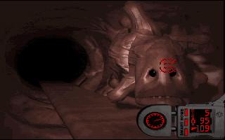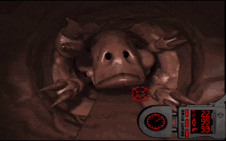 Creature Shock is a unique combination of an action/arcade game combined with the exploration and discovery more often associated with role playing or adventure games. Unlike most action games, the enemies in Creature Shock have only one or two weak spots and can only be damaged by shooting them in those weak spots. Hence, combat is at a much slower pace and is far more tactical than merely reflexive.