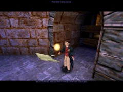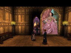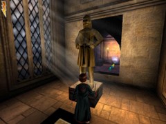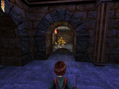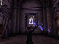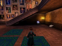 Don�t follow Hermione yet all the way to the 3rd floor where the lesson will be given. In stead of that climb up the stairs in front of you. In the next passage you'll see a little fellow climbing up the stairs to the right. Standing in front of a closed door he is waving at you. Follow this little fellow through the opening door. You arrive in the hall with the many portraits.
