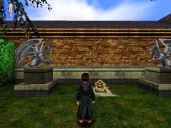 the courtyard (not by the red door) and cast Flipendo on the statue of the