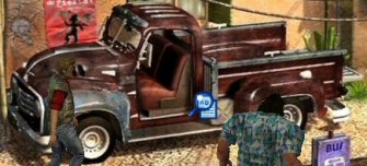 Exit the house and go to the truck-van. Click on the tube right of the running board of the truck-van and get a close up of the van.