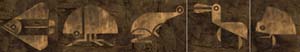 37 contains a circle of stones that need to be lowered in exactly the right order. Each of the marbles that you saw earlier in the game were associated with one of the animals depicted on the stones. The number of the back of the marble determines the order to push the tablets in. Here are the pictures of the five stones that you need to push: