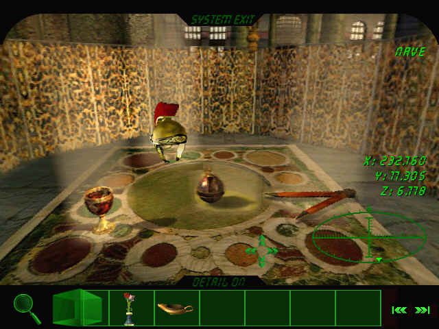 A : Exit the system and ask Sharife about the missing parts. Choose this option for more information : 2,2 (you should show the scanner again to the girl after this),3,2,2,1,1. Now you have to collect several pictures from different sites to complete KLIO (Topkapi Palace throne room simulation).