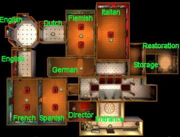 Museum Director's Office: Go back to the landing by the main stairs. Enter the door on the right at top of landing.
