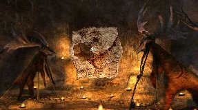 Spirit music puzzle - The spirit engraved musical stones are placed on a skin on the ground. The object of the puzzle is to play the music of the spirit to awaken them.