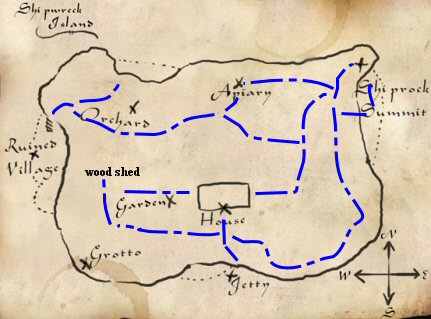 Study - Enter the door to study. Look close on map on wall and click on Shipwreck Island.