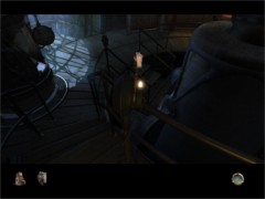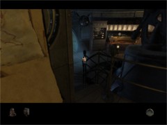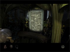Look a little to the left and switch on the lamp on the desk by using the switch on top of it. Turn around and walk toward the left nightstand. Switch on this lamp too. Walk toward the fireplace and notice that the bottom part is now lit. Step into that part of the fireplace. Look around and see that Yeesha's amulet is laying on the floor. Pick it up and click on it to see what has taken place. Remember that Yeesha told you earlier that she can see things by using this amulet!