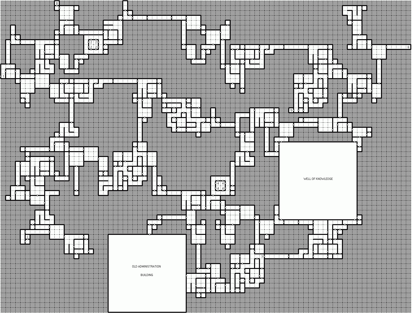 Now head all the way to the east. The door at 6 leads to the Crevasses but it can only be opened